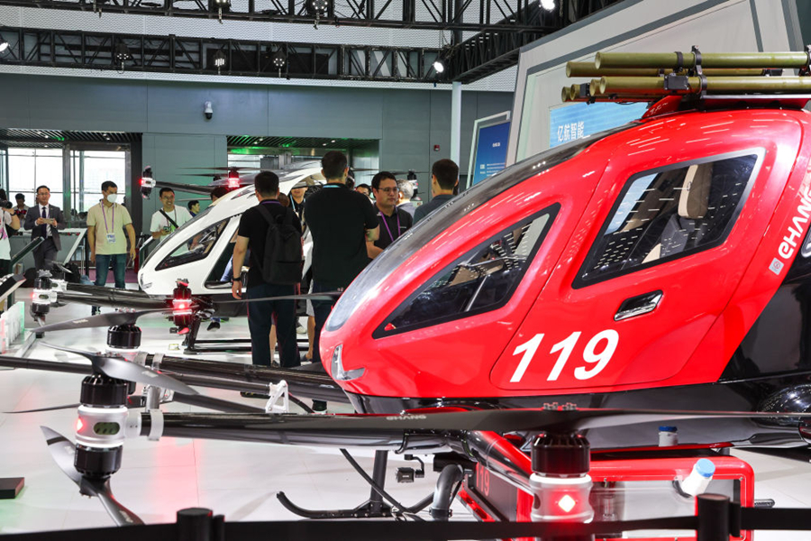 這是廣交會(huì)新設(shè)置的新能源及智能網(wǎng)聯(lián)汽車展區(qū)展示的億航載人和運(yùn)輸無人機(jī)(4月15日攝)。新華社記者 劉大偉 攝