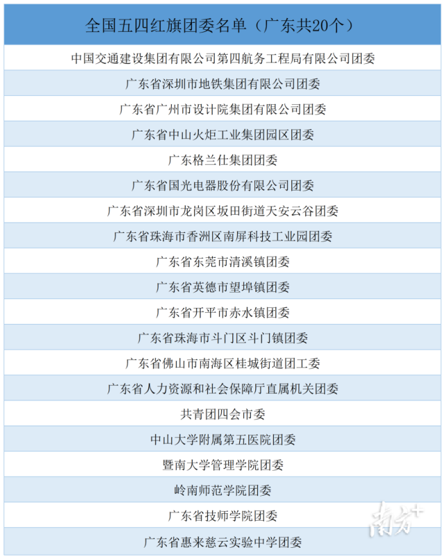 全國(guó)五四紅旗團(tuán)委名單(廣東共20個(gè))