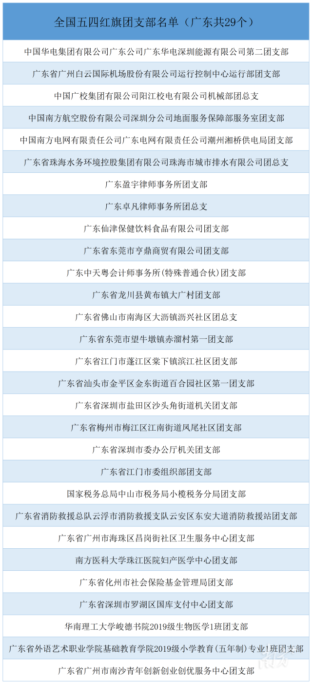 全國(guó)五四紅旗團(tuán)支部名單(廣東共29個(gè))