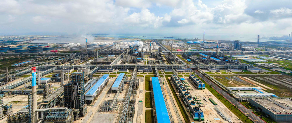 廣東省湛江市東海島拍攝的中科煉化廠區(qū)(5月25日攝,無(wú)人機(jī)照片)。聚集了寶鋼湛江鋼鐵、中科煉化和巴斯夫項(xiàng)目及一批上下游產(chǎn)業(yè)的湛江東海島,正迅速崛起綠色鋼鐵和綠色石化兩大千億級(jí)臨港工業(yè)集群,成為廣東最大的臨港工業(yè)島。新華社記者 鄧華 攝