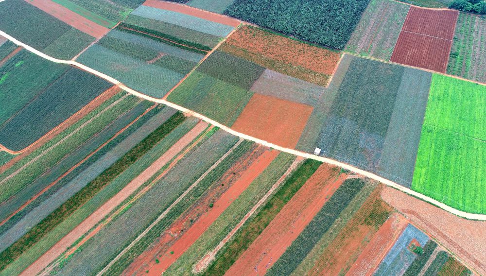 湛江市徐聞縣曲界鎮(zhèn)以菠蘿為主的多種作物農(nóng)田(5月26日攝,無(wú)人機(jī)照片)。新華社記者 盧漢欣 攝