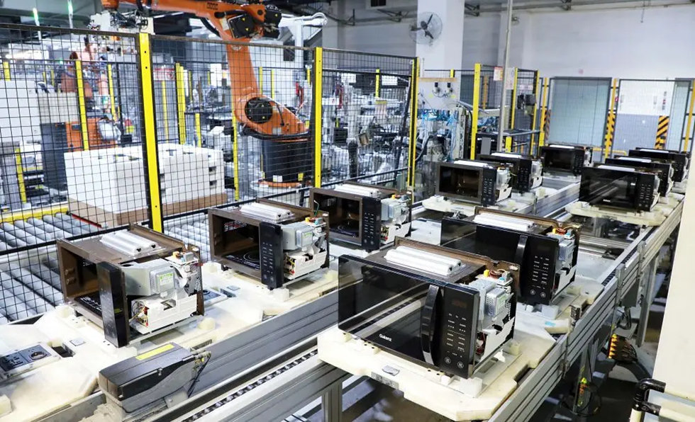 這是格蘭仕微波爐總裝車間。新華社記者劉宏宇 攝