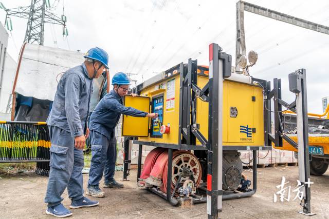 8月31日,南方電網(wǎng)廣東珠海供電局運維人員在檢查自主研發(fā)的高機動綜合應(yīng)急排水工作站狀態(tài)。
