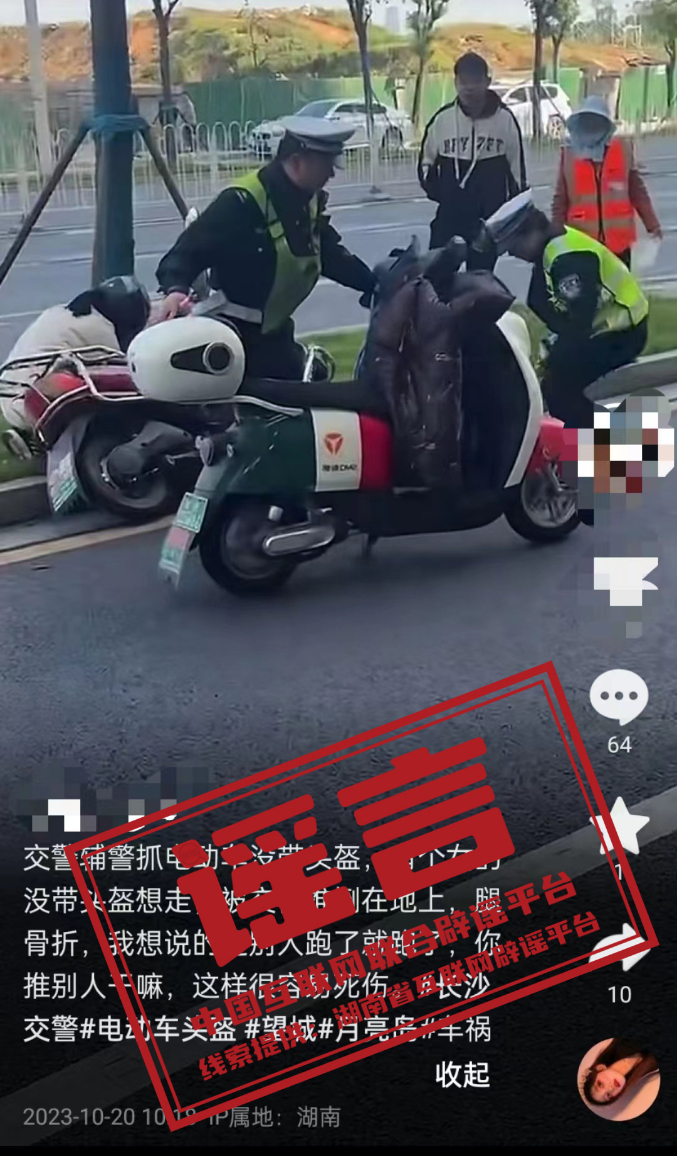 謠言:長沙交警執(zhí)法時(shí)推倒電動(dòng)車?