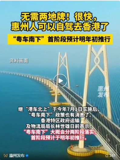 香港特別行政區(qū)運(yùn)輸及物流局局長(zhǎng)日前表示,“粵車南下”大概會(huì)分兩階段落實(shí),首階段預(yù)計(jì)于明年初推行。