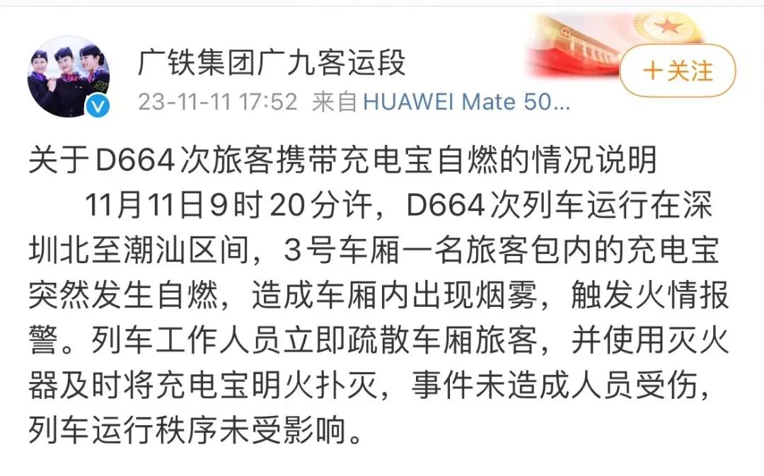 3號車廂一名旅客包內(nèi)的充電寶突然發(fā)生自燃