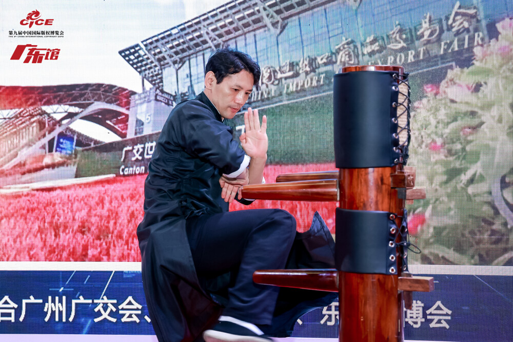 展館現(xiàn)場還進(jìn)行了東莞麒麟舞、佛山武術(shù)、潮州工夫茶等民間文藝展演。佛山詠春拳葉問宗支非遺傳承人董崇華現(xiàn)場演繹了詠春拳的精妙,拳風(fēng)霍霍。國家非物質(zhì)文化遺產(chǎn)項目潮州工夫茶藝代表性傳承人李淡榆向觀眾完整展演潮州工夫茶沖泡的獨到技藝,茶香四溢。