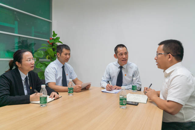 謝亞利(右二)與企業(yè)職工交流。