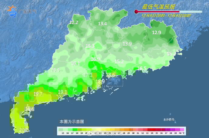 8日,中北部市縣晴間多云,南部市縣晴轉(zhuǎn)多云,局部有零星小雨。早晨部分市縣有(輕)霧。最低氣溫:粵北和珠江三角洲北部市縣7~11℃,珠江口附近和粵西市縣15~18℃,其余市縣12~15℃。