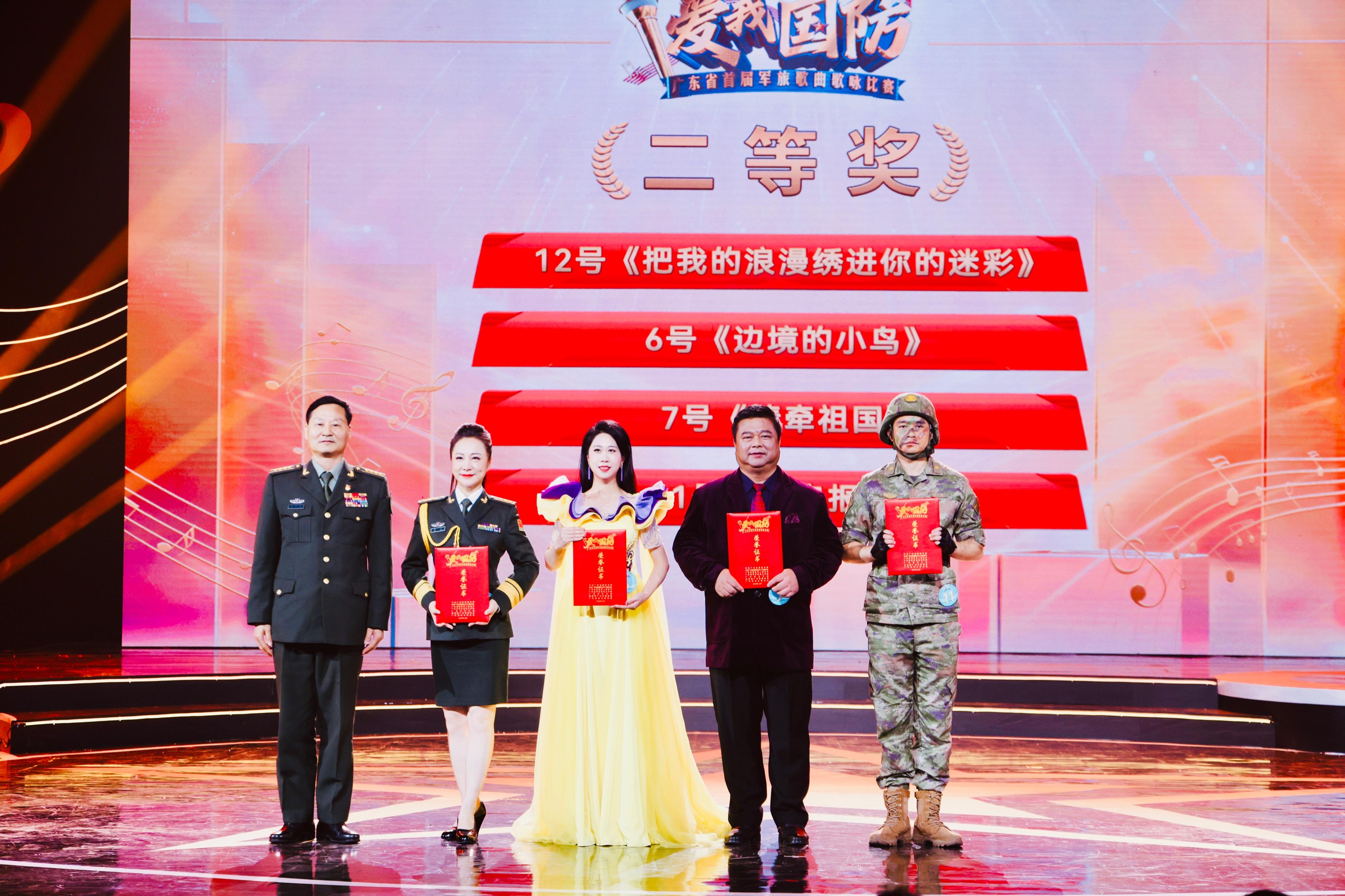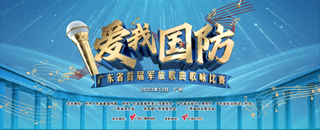 12月20日晚上,由中共廣東省委宣傳部、中共廣東省直屬機關(guān)工作委員會、廣東省退役軍人事務(wù)廳、廣東省軍區(qū)政治工作局、廣東省總工會、共青團廣東省委員會、廣東省婦女聯(lián)合會聯(lián)合主辦,廣東廣播電視臺承辦、大灣區(qū)衛(wèi)視承制的“愛我國防——廣東省首屆軍旅歌曲歌詠比賽”在廣東廣播電視臺1600平方米演播廳舉行。通過全省各地層層選拔、從半決賽中脫穎而出的12組選手參與總決賽的角逐,爭奪一、二、三等獎。