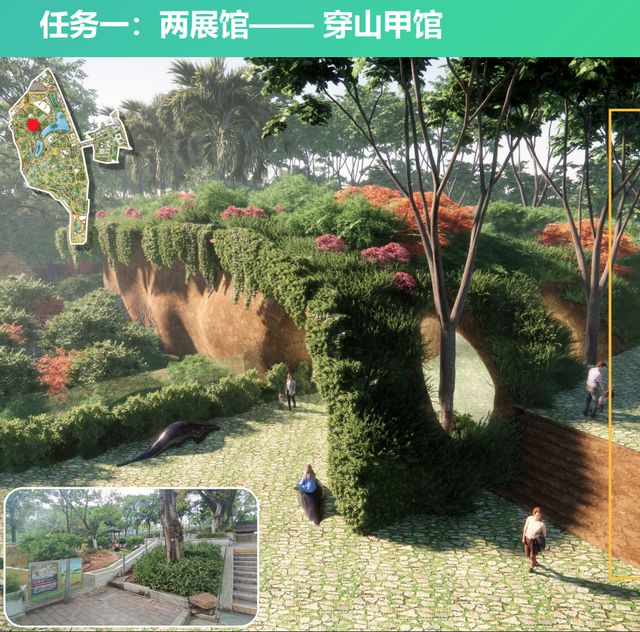 新建穿山甲館位于動(dòng)物園北部,原狀為浣熊展區(qū)的東北角。新建穿山甲館將包含室內(nèi)展區(qū)、后勤管理區(qū)、室外展區(qū)、景觀綠化的建設(shè)及主題廣場(chǎng)改造等。