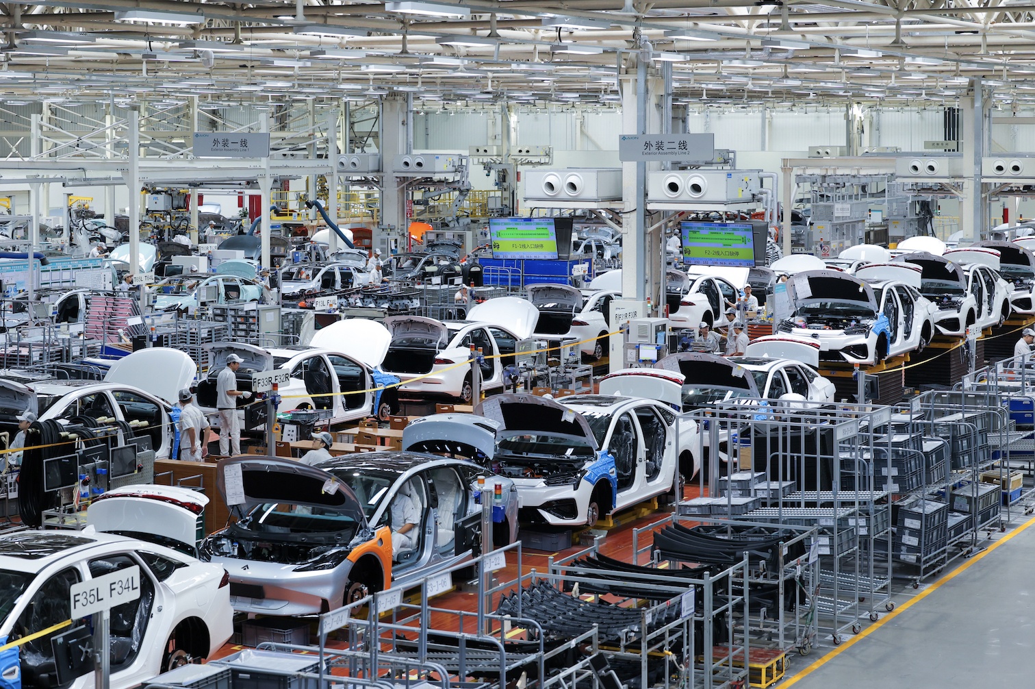 全國(guó)每4輛新能源汽車就有1輛是“廣東造” 圖為廣汽埃安新能源汽車生產(chǎn)線