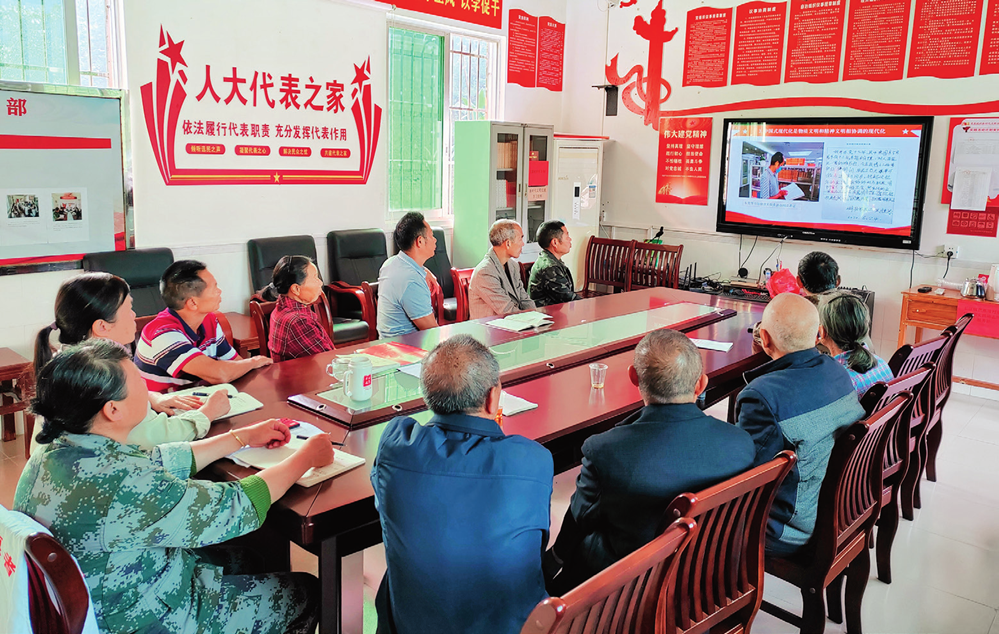 廣東省韶關(guān)市仁化縣長江鎮(zhèn)芭蕉垅村黨員收看黨的二十大精神專題培訓(xùn)(2023 年 11 月 3 日攝) 廣東省委組織部供圖
