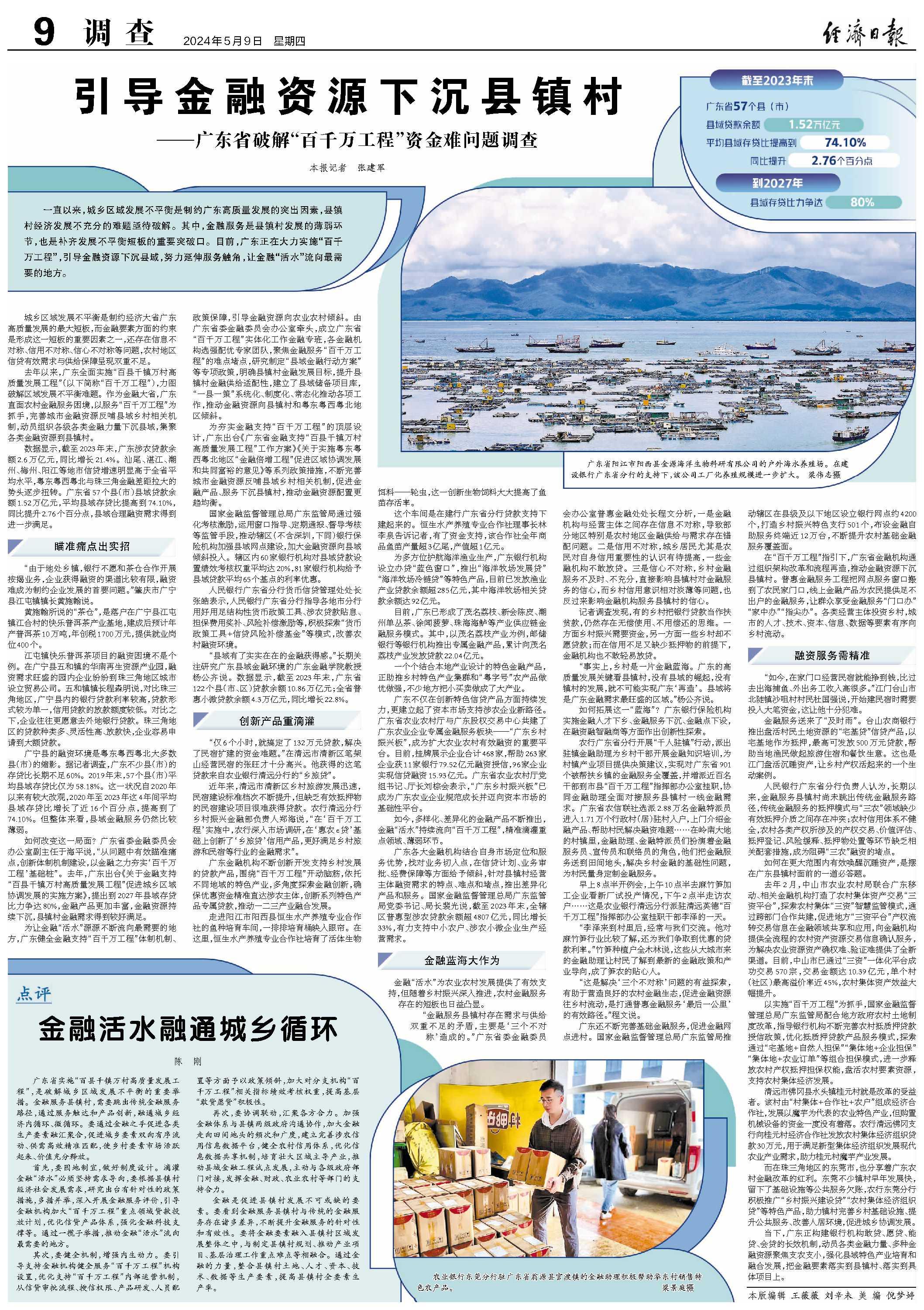 如何改變這一局面?廣東省委金融委員會辦公室副主任于海平說,“從問題中有效瞄準痛點,創(chuàng)新體制機制建設,以金融之力夯實‘百千萬工程’基礎樁”。去年,廣東出臺《關于金融支持“百縣千鎮(zhèn)萬村高質(zhì)量發(fā)展工程”促進城鄉(xiāng)區(qū)域協(xié)調(diào)發(fā)展的實施方案》,提出到2027年縣域存貸比力爭達80%,金融產(chǎn)品更加豐富,金融資源持續(xù)下沉,縣鎮(zhèn)村金融需求得到較好滿足。