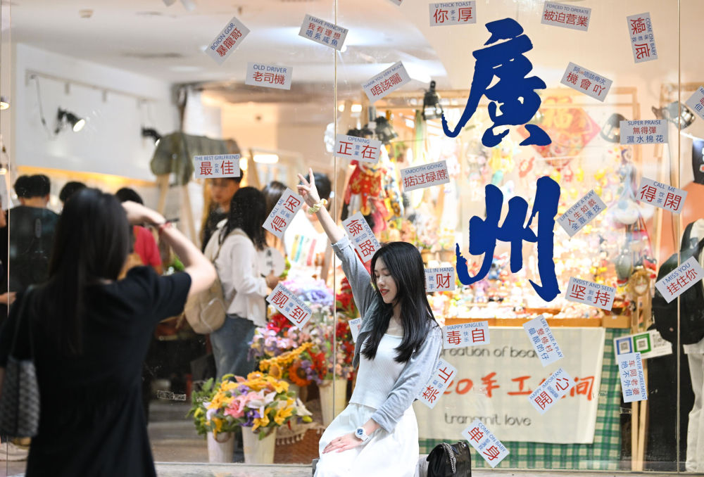 游客在廣州沙面的店鋪打卡拍照。記者 鄧華 攝