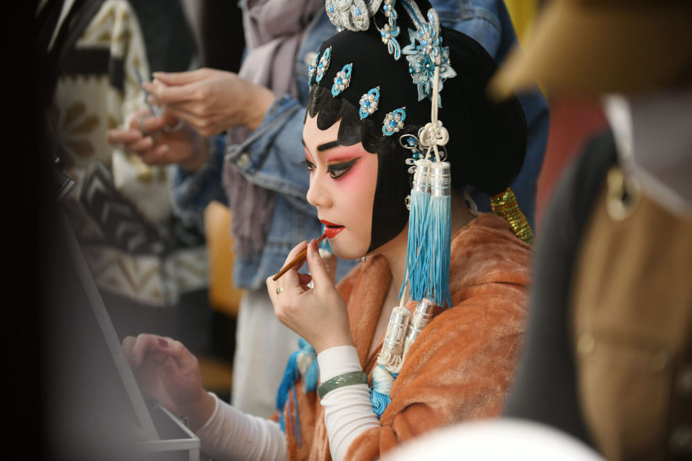 廣州粵劇院演員在后臺化妝。新華社發(fā)(許建梅 攝)