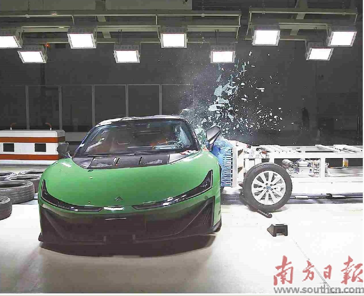 中汽研廣州檢驗中心碰撞試驗室正進行汽車側面碰撞試驗。 南方日報記者 李永智 張迪 通訊員 江雨璇 攝