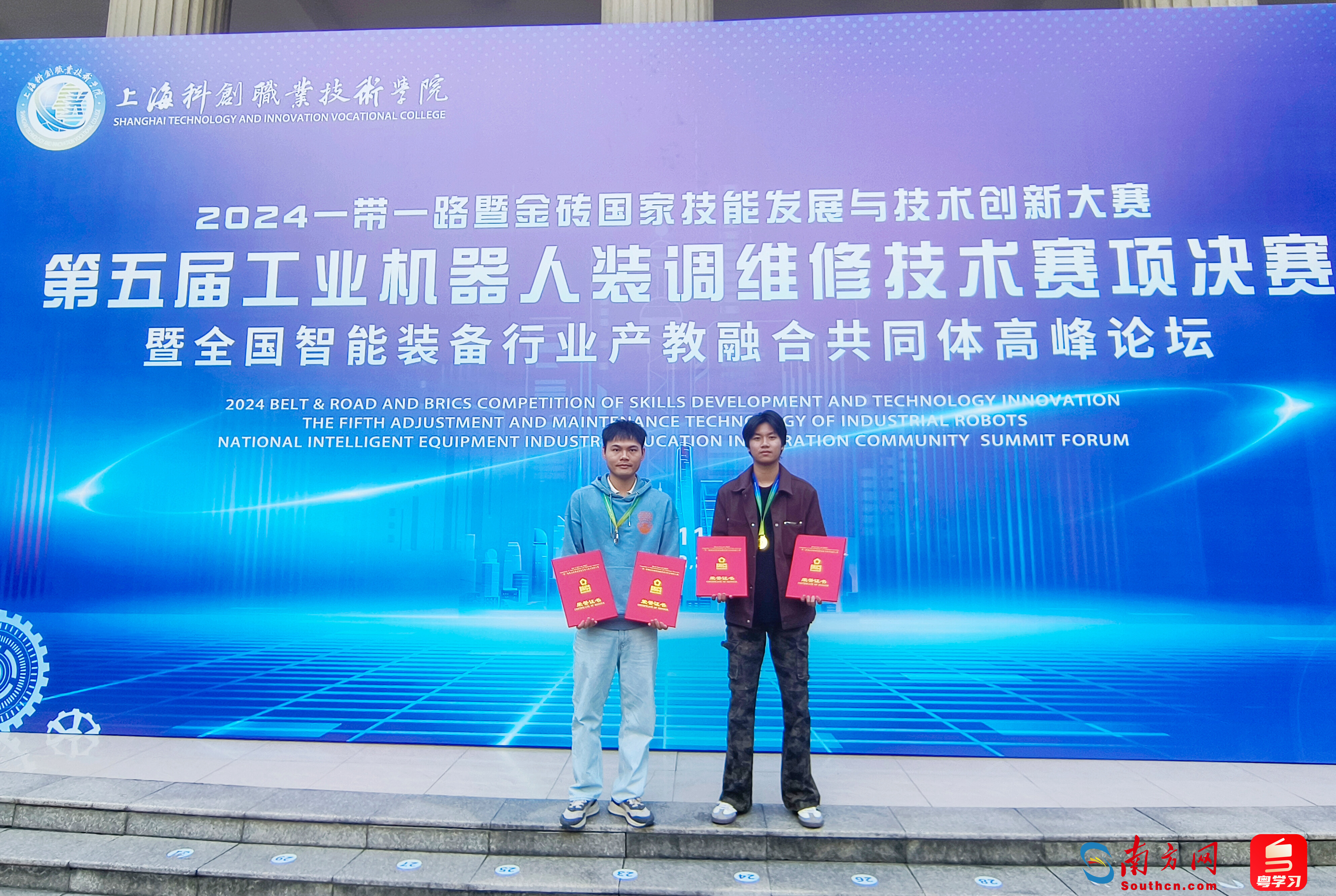 廣東技能青年再度“出圈”!11月11日,2024一帶一路暨金磚國家技能發(fā)展與技術(shù)創(chuàng)新大賽之“第五屆工業(yè)機(jī)器人裝調(diào)維修技術(shù)”賽項(xiàng)決賽在上海落幕。來自廣東陽江技師學(xué)院的師生脫穎而出,機(jī)電一體化技術(shù)專業(yè)五年制2022級學(xué)生梁國富以學(xué)生組第一名的成績獲得全國一等獎,將代表中國赴巴西參賽;機(jī)電工程系教師劉志毅以職工組第三名的成績獲得全國二等獎。該校還獲得最佳組織獎。