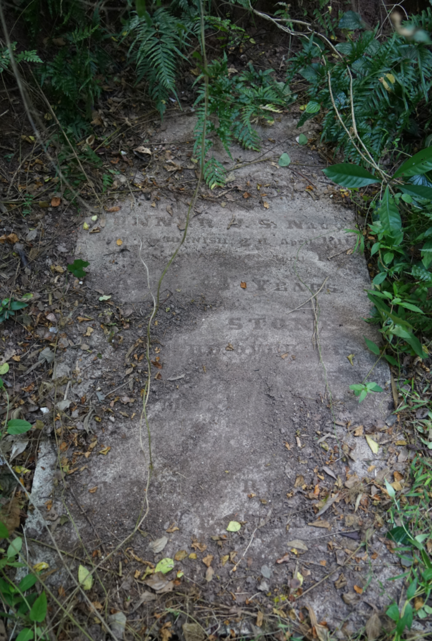 保存完好的三塊墓碑長度均在2.15-2.2米之間,寬度為0.64-0.68米之間。三塊墓碑平行放置,成同一水平面。文物專家根據(jù)碑文發(fā)現(xiàn),三位墓主均為美國東印度艦隊(duì)波瓦坦號(POWHATAN)和萬達(dá)利亞號(VANDALIA)的船員,安葬于1854年12月到1855年4月之間。