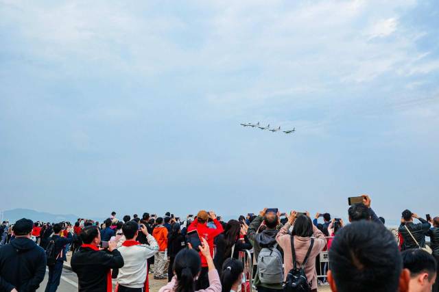 亮燈儀式現(xiàn)場(chǎng),執(zhí)飛珠海航展的飛行團(tuán)隊(duì)帶來精彩的飛行表演,拉開亮燈儀式序幕。飛行編隊(duì)緩緩升空,在碧藍(lán)的天空中靈活地穿梭、重組,流暢地組合成各種虛擬圖案,令人目不暇接。