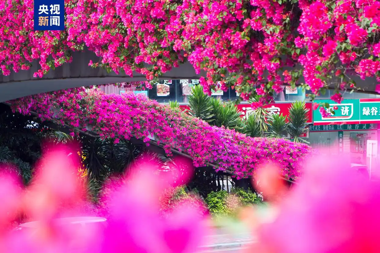 大部分簕杜鵑自然花期主要集中在8-12月,簕杜鵑會根據(jù)氣候條件情況自然開花,每輪花期之間間隔15-20天左右,間隔期處于無花狀態(tài)。廣州市林業(yè)和園林科學(xué)研究院白云苗圃主任溫志告訴記者,如今廣州橋梁綠化通過微修剪控芽、施肥、控水促花、生長激素輔助等花期調(diào)控技術(shù)實現(xiàn)四季有花。繁紅花道、空中彩帶,七彩花廊成為廣州一道道亮麗風(fēng)景。