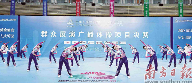 廣東隊(duì)在十五運(yùn)會(huì)群眾展演廣播體操項(xiàng)目決賽比賽中。錢文攀 攝