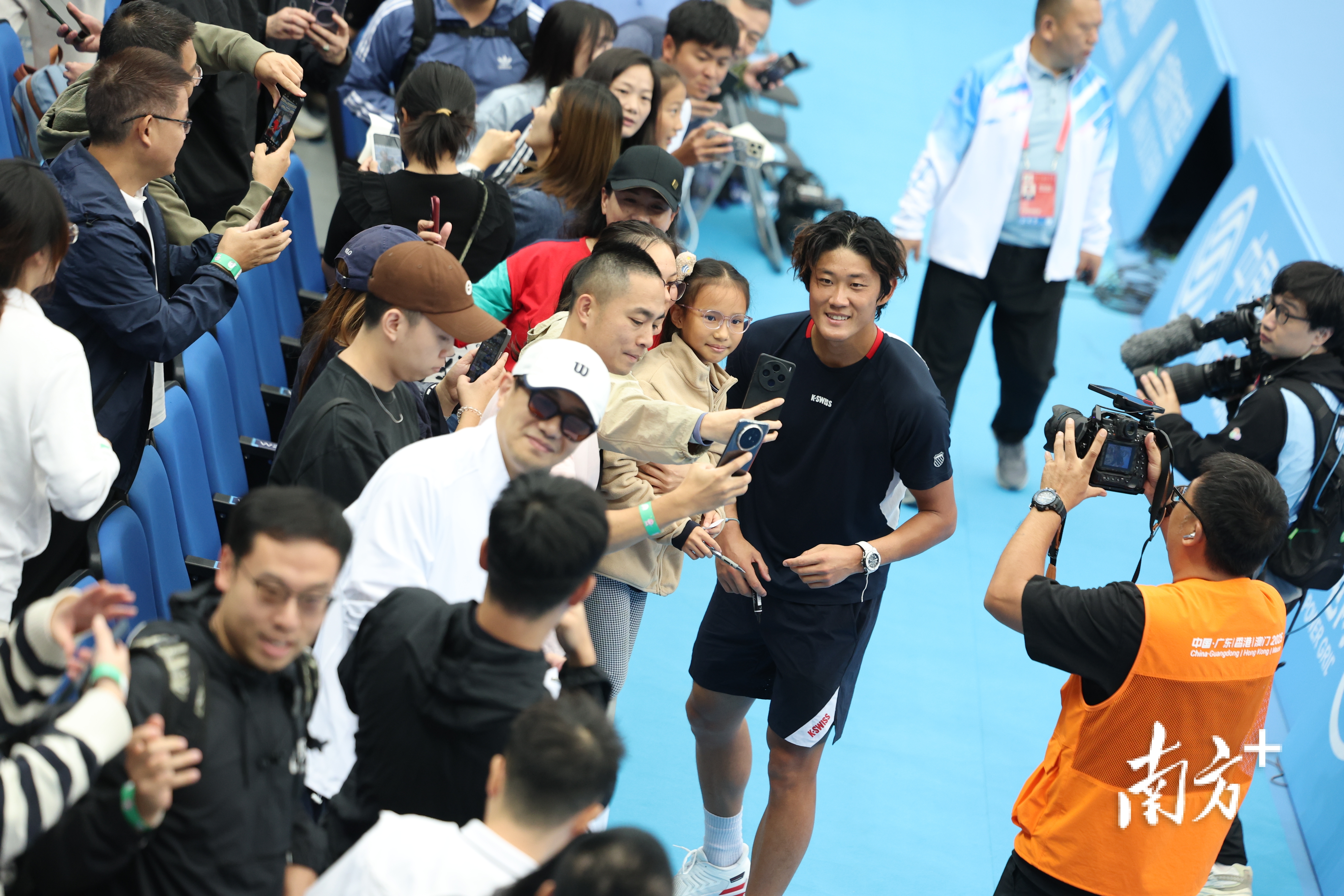 11月3日,大量球迷來(lái)到全運(yùn)會(huì)賽場(chǎng),與球員張之臻在賽后熱情互動(dòng)。許舒智 攝