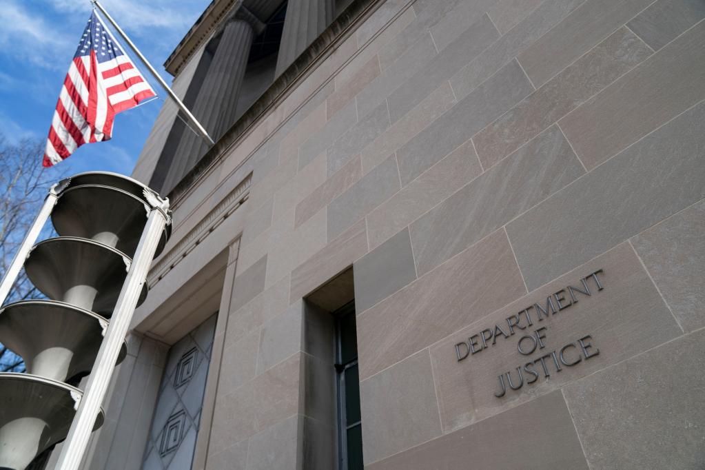 這是2022年3月10日在美國(guó)首都華盛頓拍攝的美國(guó)司法部大樓。新華社記者劉杰攝