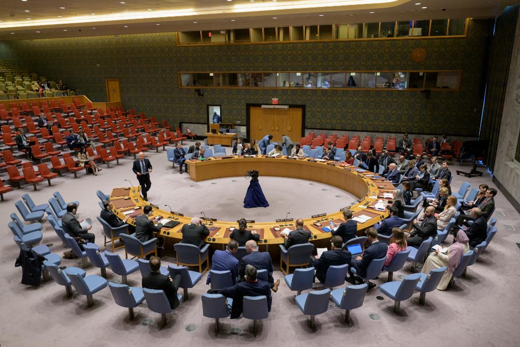 這是5月18日在位于紐約的聯(lián)合國總部拍攝的安理會審議向?yàn)蹩颂m提供武器問題現(xiàn)場。新華社發(fā)(聯(lián)合國供圖/埃瑟金德爾·德貝卜攝)