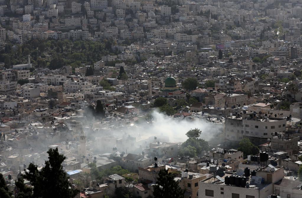 5月4日,約旦河西岸城市納布盧斯一處房屋在被以色列軍隊(duì)突襲時(shí)升起煙霧。新華社發(fā)(艾曼·努巴尼攝)
