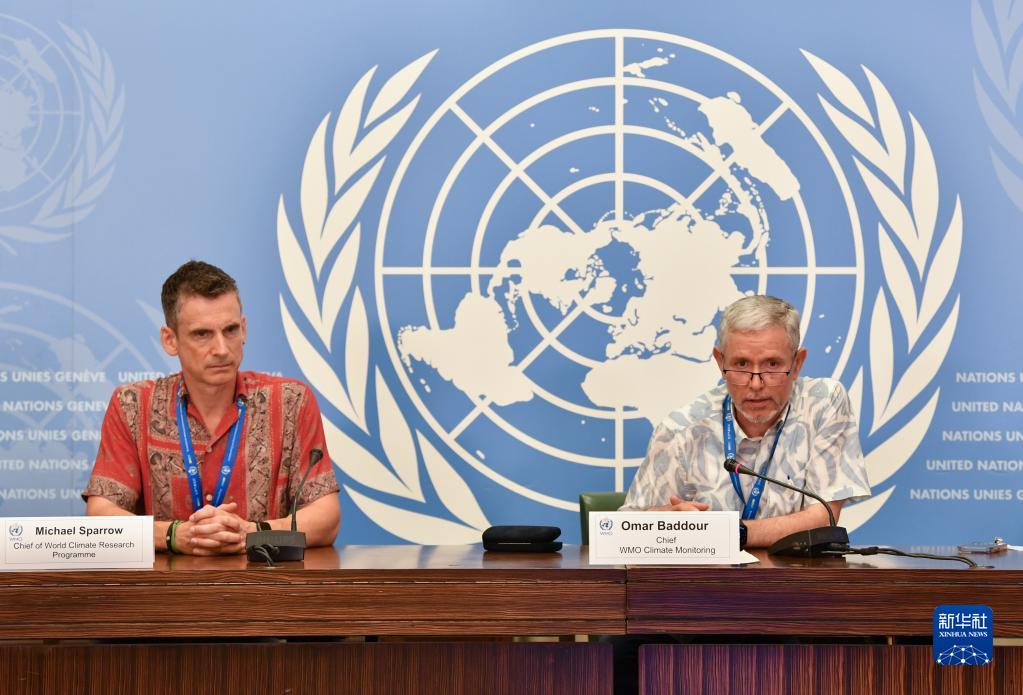 7月10日,在瑞士日內(nèi)瓦,世界氣象組織官員奧馬爾·巴杜爾(右)在新聞發(fā)布會上就近期高溫天氣與厄爾尼諾現(xiàn)象進行說明。新華社記者連漪攝
