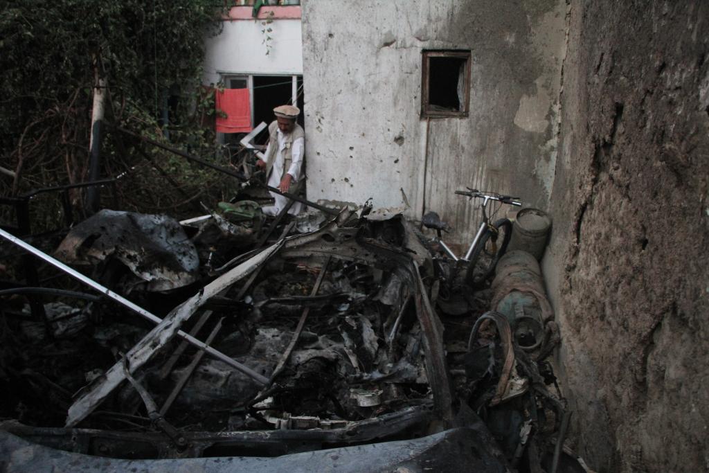 2021年8月29日,美軍在阿富汗首都喀布爾實施無人機(jī)襲擊造成當(dāng)?shù)?0名平民死亡,其中包括7名兒童。圖為同日拍攝的居民區(qū)遭襲現(xiàn)場。新華社發(fā)(塞夫拉赫曼·薩菲攝)