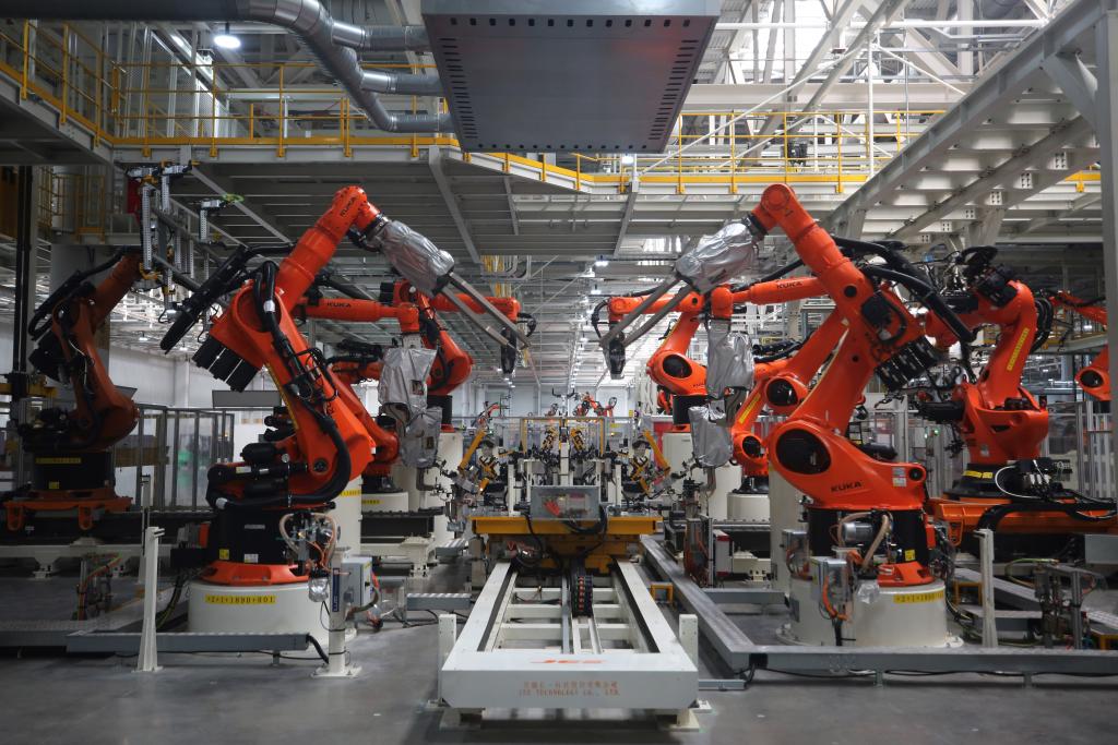 這是5月29日在安徽合肥拍攝的大眾安徽模塊化電驅(qū)動平臺工廠車身車間一角。新華社記者杜瀟逸攝