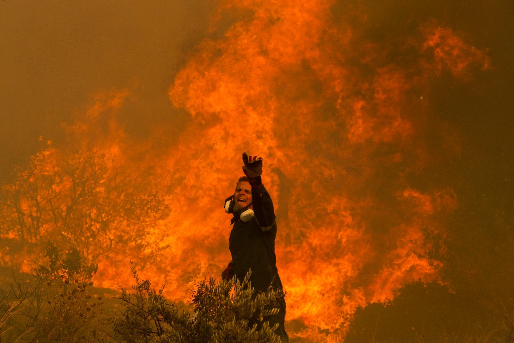 8月23日,消防員在希臘雅典附近參與滅火。新華社發(fā)(馬里奧斯·羅洛斯攝)
