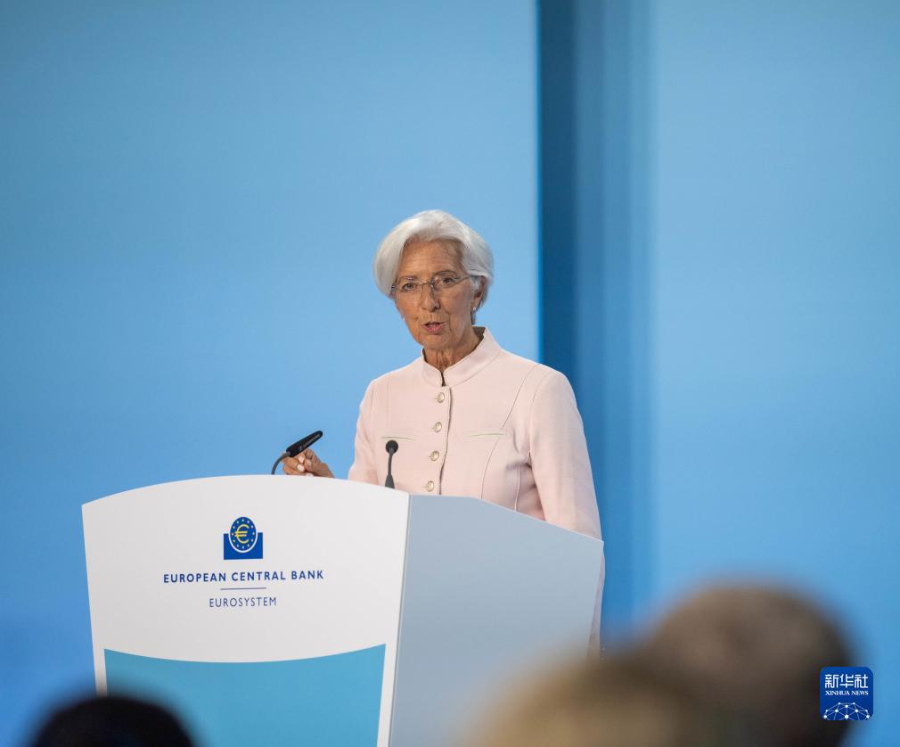 9月14日,歐洲中央銀行行長拉加德在德國法蘭克福歐洲央行總部舉行的新聞發(fā)布會(huì)上講話。歐洲中央銀行14日召開貨幣政策會(huì)議,決定將歐元區(qū)三大關(guān)鍵利率均上調(diào)25個(gè)基點(diǎn)。這是歐洲央行自去年7月以來連續(xù)第十次加息。新華社發(fā)(歐洲央行供圖)