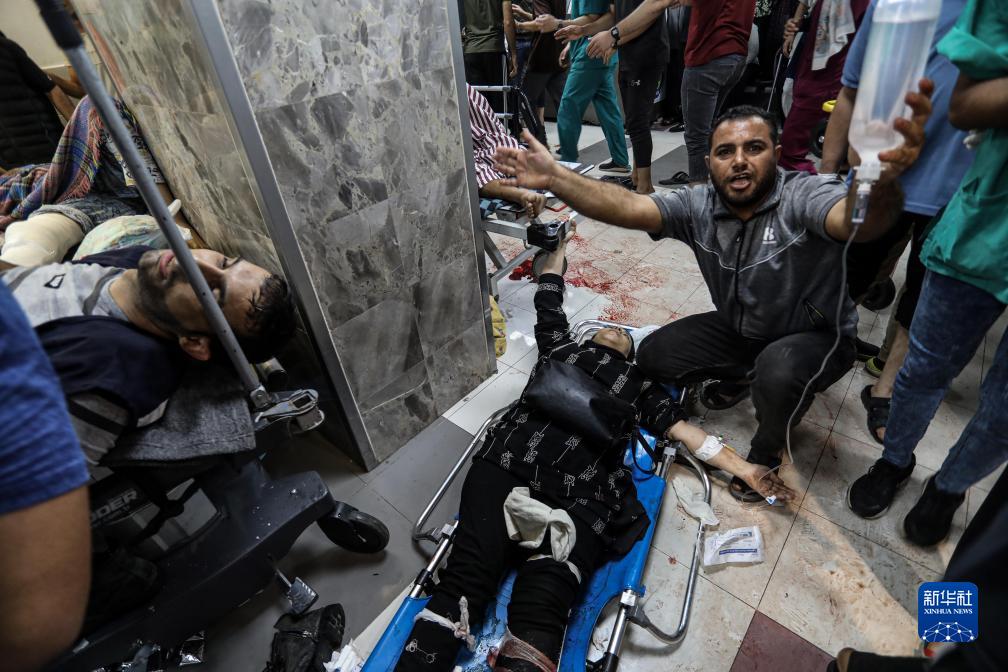 11月3日,人們在加沙城希法醫(yī)院接受治療。新華社發(fā)