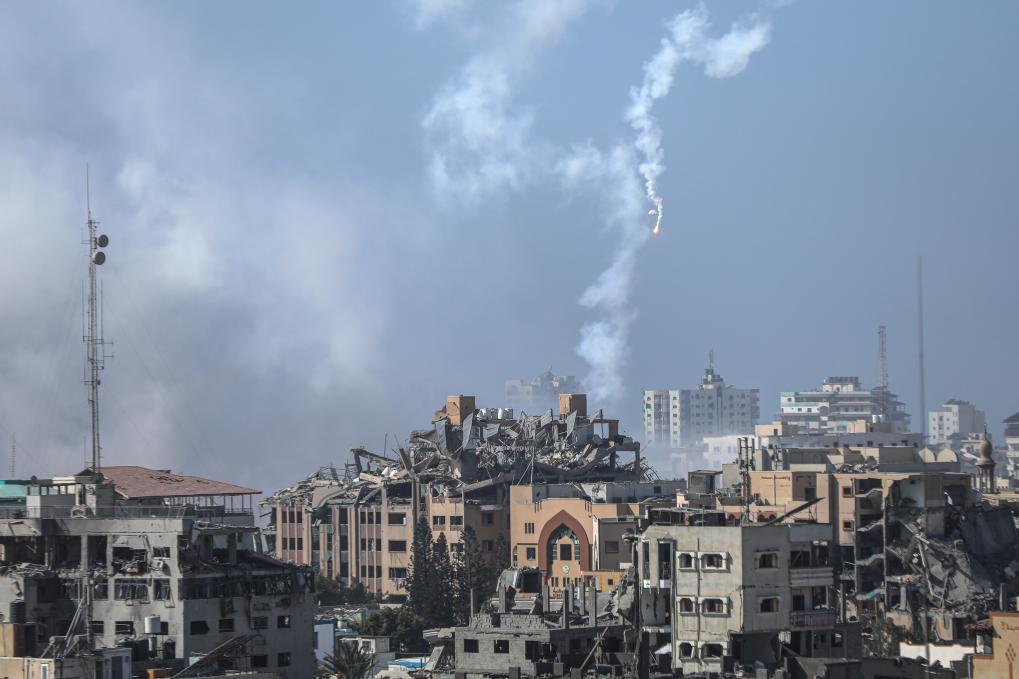 11月9日,加沙城建筑遭以色列軍隊空襲后升起濃煙。新華社發(fā)