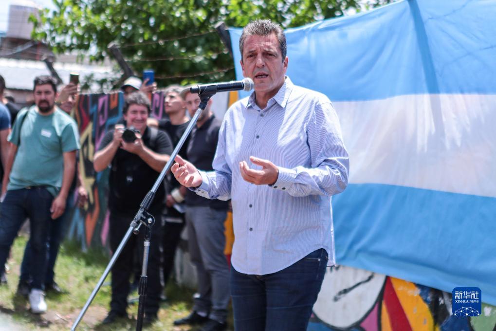 11月19日,阿根廷中左翼執(zhí)政聯(lián)盟祖國(guó)聯(lián)盟候選人馬薩在阿根廷布宜諾斯艾利斯省蒂格雷市的一處投票站投票后發(fā)表講話。新華社發(fā)(盧西亞諾·托雷斯攝)