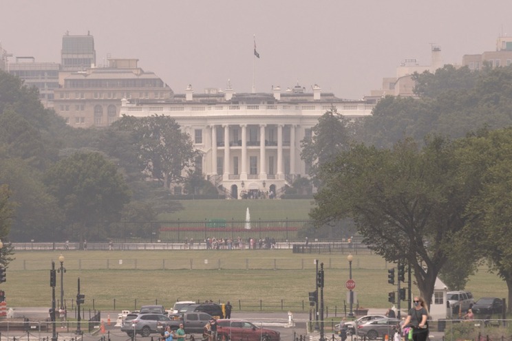 6月29日,在美國(guó)首都華盛頓,白宮籠罩在煙霧中。新華社發(fā)(亞倫攝)