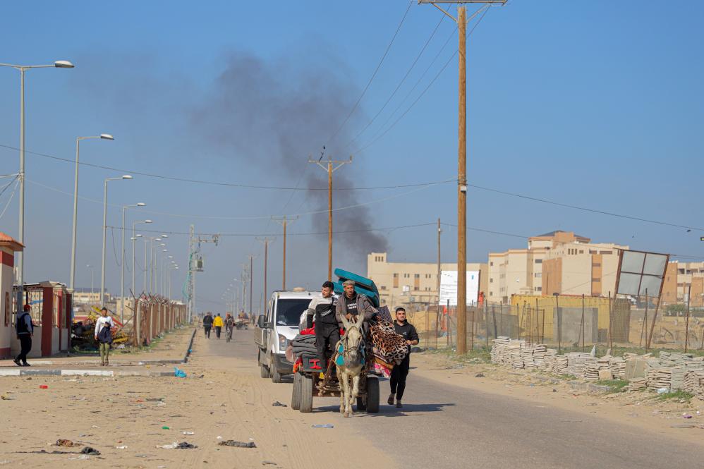 4日,以軍在社交媒體發(fā)布汗尤尼斯市地圖,以代表“必須撤離”的黃色標(biāo)注該市大約四分之一區(qū)域。多家媒體發(fā)布的民眾撤離視頻報道顯示,大部分人步行,還有人將家當(dāng)放在驢車甚至駱駝上,行進隊伍死寂無聲。