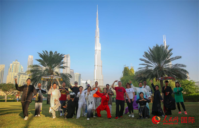 人民網(wǎng)迪拜12月13日電 (記者管克江)周日清晨,世界最高塔——迪拜哈利法塔下的草坪上,一群身穿中式練功服的人們排成隊列,伴著舒緩的古典民樂,起勢、野馬分鬃、白鶴亮翅……近年來,每周練習太極拳已經(jīng)成為許多迪拜民眾的愛好。