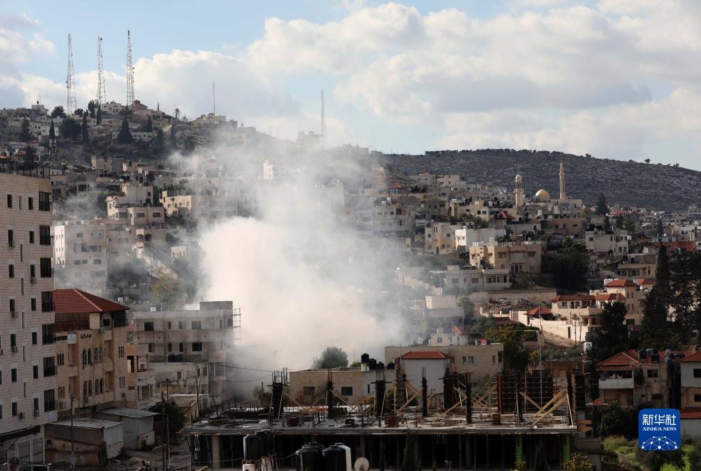 這是12月14日在約旦河西岸城市杰寧拍攝的軍事行動(dòng)中產(chǎn)生的濃煙。 新華社發(fā)(艾曼·諾巴尼攝)