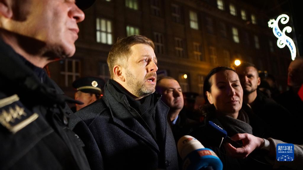 12月21日,捷克內(nèi)政部長(zhǎng)拉庫(kù)尚(中)在捷克首都布拉格舉行的新聞發(fā)布會(huì)上講話(huà)。新華社發(fā)(達(dá)娜·科什奈洛娃攝)