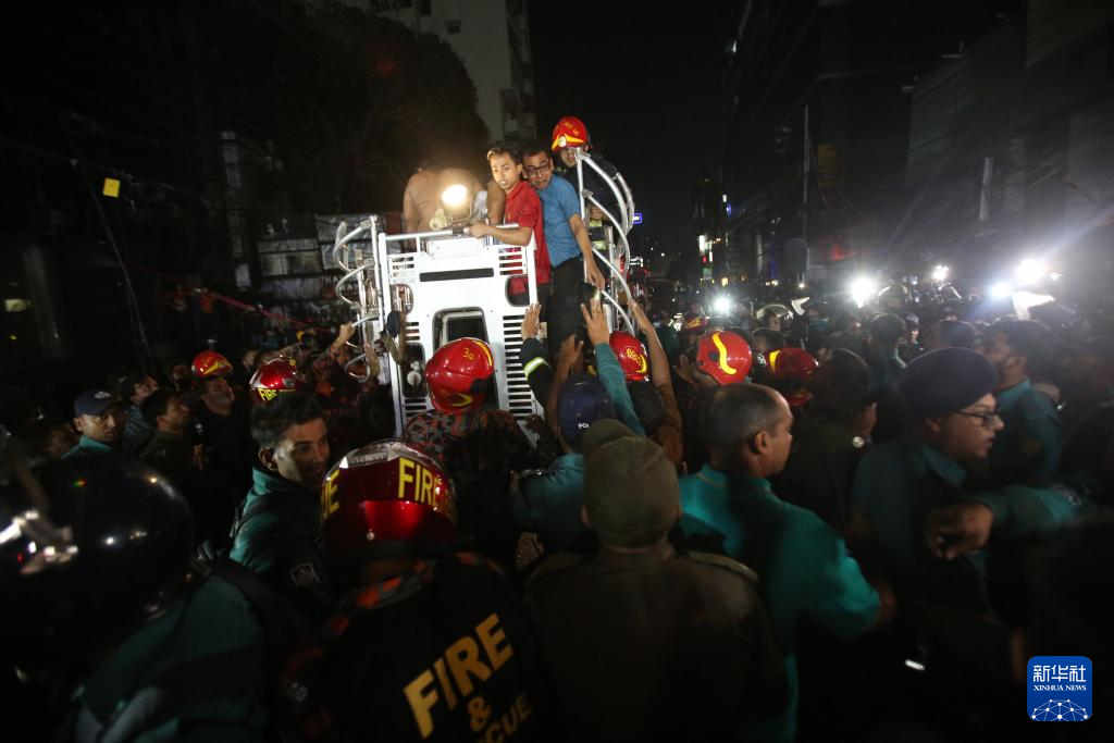 2月29日,在孟加拉國(guó)首都達(dá)卡,消防員救出被困者。新華社發(fā)