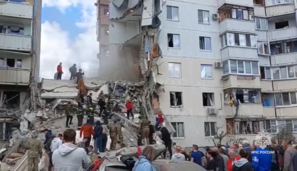 5月12日,俄羅斯南部靠近烏克蘭邊境的別爾哥羅德市一棟居民樓遭遇襲擊后坍塌,造成12人死亡。新華社發(fā)(俄羅斯緊急情況部供圖)