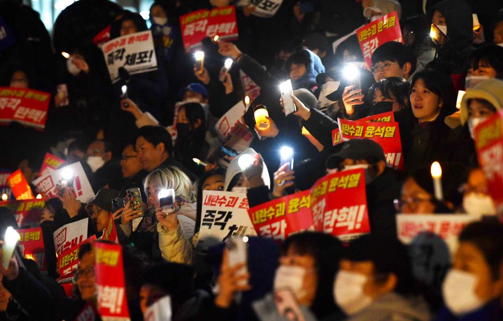 12月4日,人們在韓國首爾舉行集會,要求總統(tǒng)尹錫悅下臺。新華社發(fā)(全休相攝)