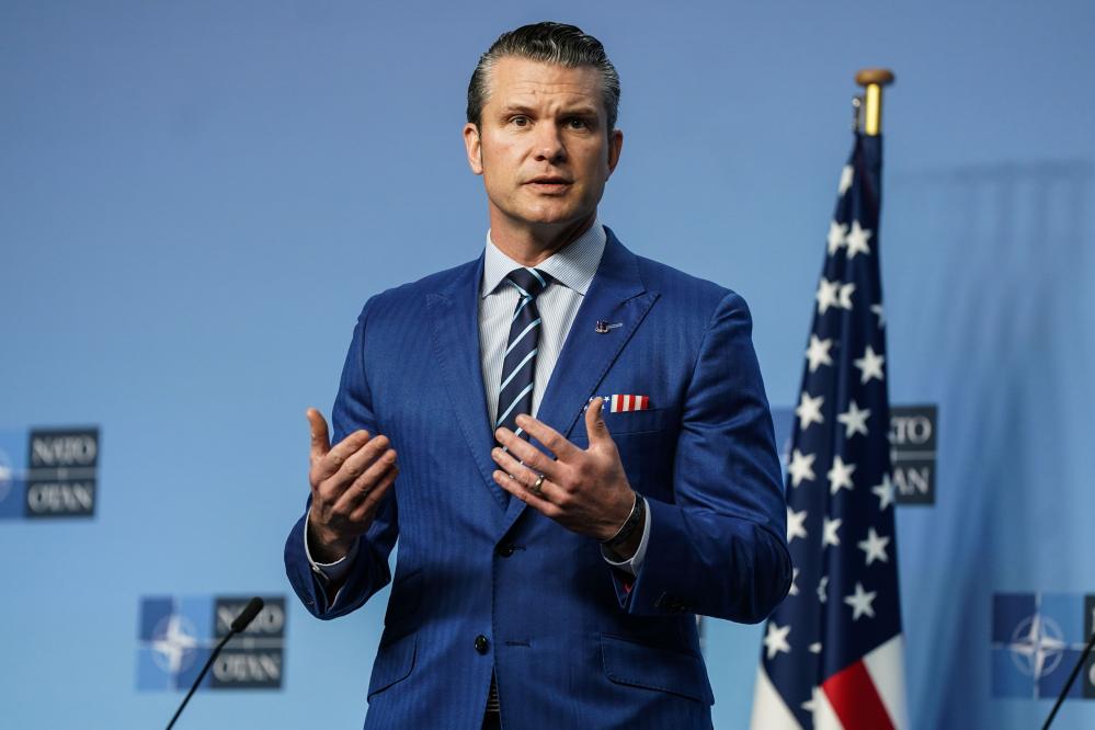 2月13日,在比利時(shí)布魯塞爾,美國國防部長赫格塞思在發(fā)布會上講話。新華社記者彭子洋攝