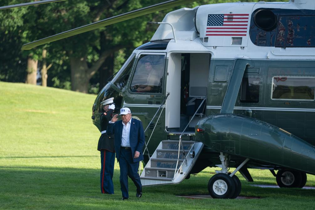 7月6日,美國總統(tǒng)特朗普乘直升機(jī)返回華盛頓白宮。新華社記者胡友松攝
