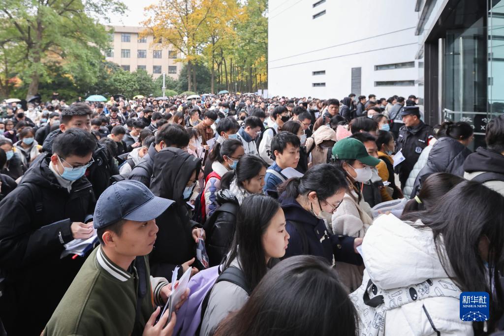 11月26日,在南京林業(yè)大學考點,考生進場準備參加考試。新華社發(fā)(蘇陽 攝)