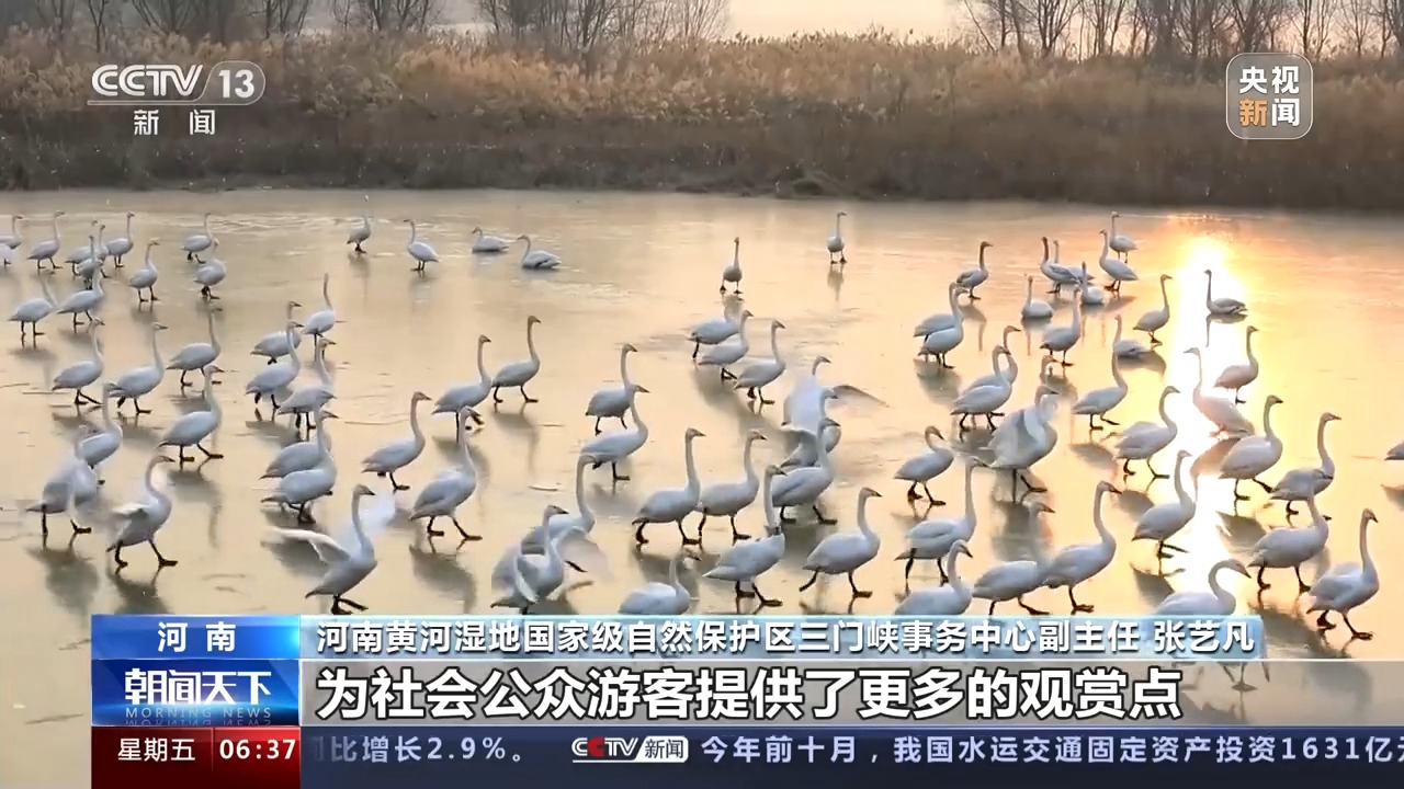 河南黃河濕地國家級自然保護區(qū)三門峽事務中心副主任 張藝凡:白天鵝棲息地也有所增加,由之前的四處增加到現(xiàn)在的九處,為社會公眾、游客提供了更多的觀賞點。